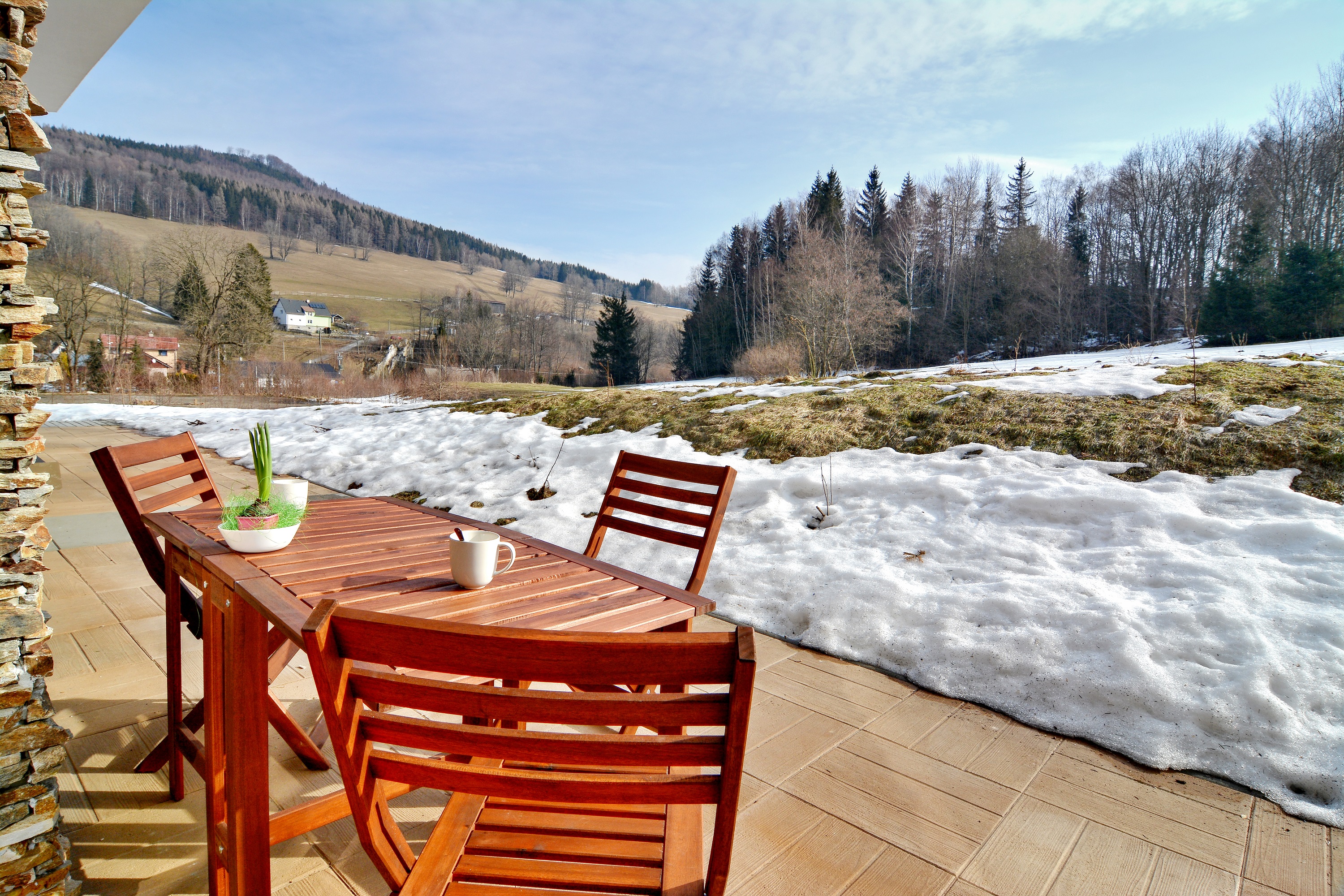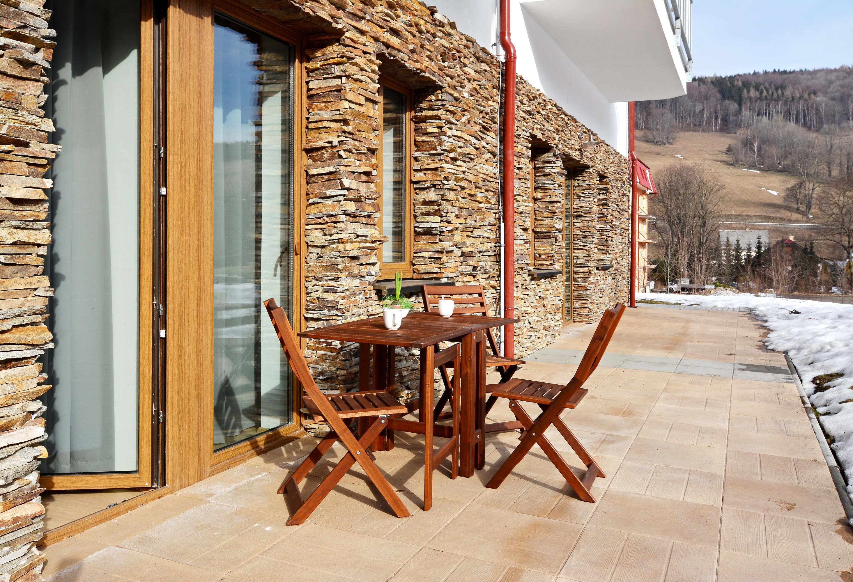 Apartmánový dům disponuje 15 apartmány, které byly dokončeny v roce 2018. Apartmány mají ideální polohu pro letní i zimní aktivity v přírodě. Nacházejí se v klidném horském prostředí na pomezí Jeseníků a Kralického Sněžníku, 6-9 km od lyžařských středisek Ramzová, Ostružná a Petříkov, 9 km od Jeseníku, 24 km od Červenohorského sedla. V apartmánu je obývací pokoj s kuchyňským koutem, ložnice, koupelna se sprchovým koutem a WC. Kuchyňská linka je vybavena indukční varnou deskou, digestoří, mikrovlnnou troubou s grilem, myčkou nádobí a velkou lednicí s mrazákem. V obývacím pokoji je komfortní designová rozkládací pohovka s plochou lůžka 160 x 200 cm. Ložnice s velkou manželskou postelí z masivu s luxusní pohodlnou matrací. Veškerý nábytek v pokojích je z masivního buku. Z ložnice je výstup na terasu plynule navazující na louku - vhodné pro rodiny s malými dětmi. Podlahové vytápění a ohřev TUV zajišťuje vlastní plynový kotel. Apartmán má vlastní měřidla elektřiny, plynu a vody. Vstup do objektu i apartmánu je možný elektronickým klíčem nebo aplikací ve smartphonu. Schodiště a parkoviště jsou monitorovány kamerovým systémem. Apartmán má vlastní elektronický zabezpečovací systém napojený na pult centrální ochrany. V objektu je společná lyžárna / kolárna. O objekt se stará správce. Zajištěn úklid společných prostor.