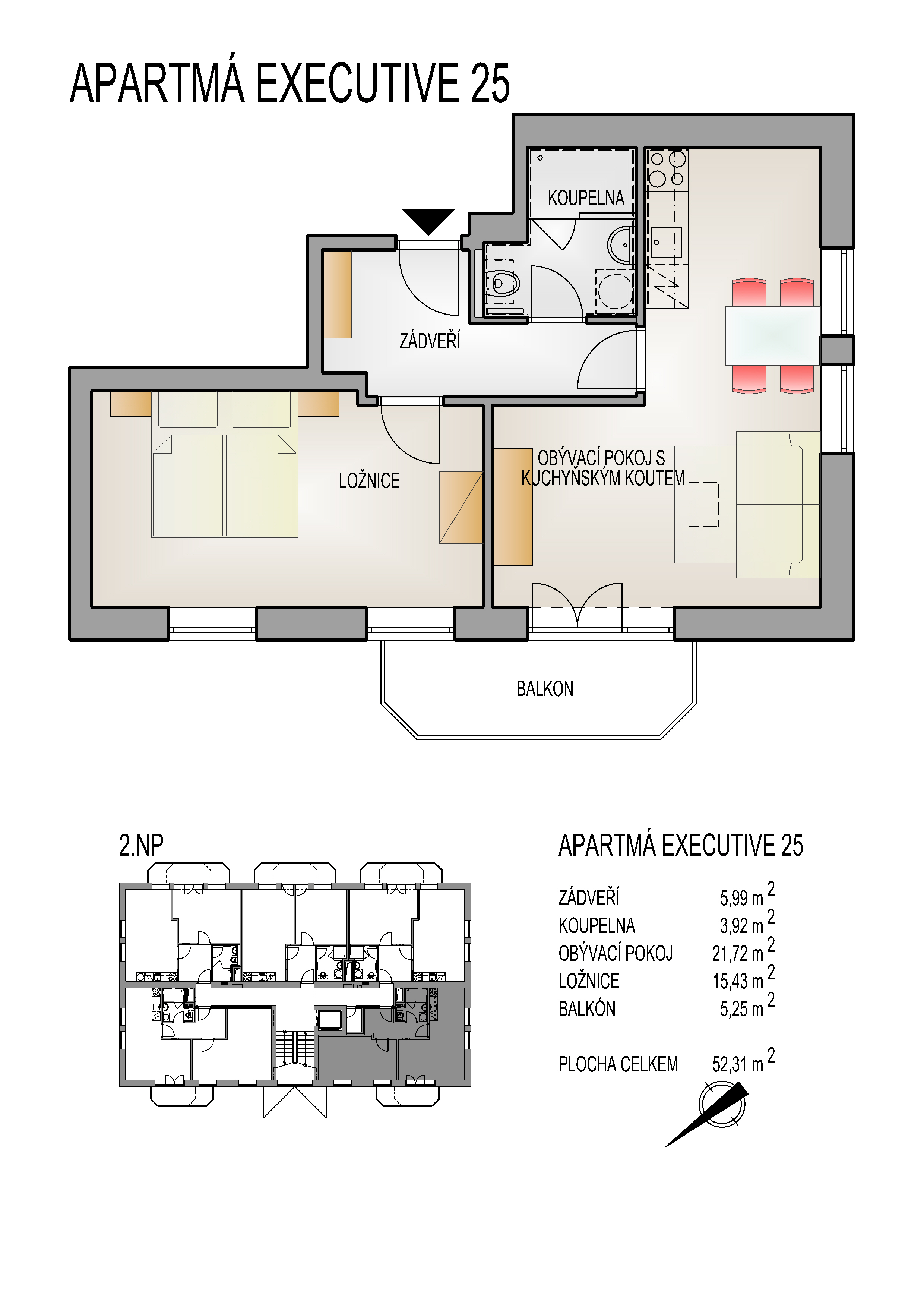 Na fotografiích jsou typové apartmány v objektu. Nábytek a veškeré vybavení na snímcích odpovídá skutečnosti, orientace místnosti a uspořádání nábytku na fotografiích se nemusí shodovat s pozicí místnosti v půdorysu.
