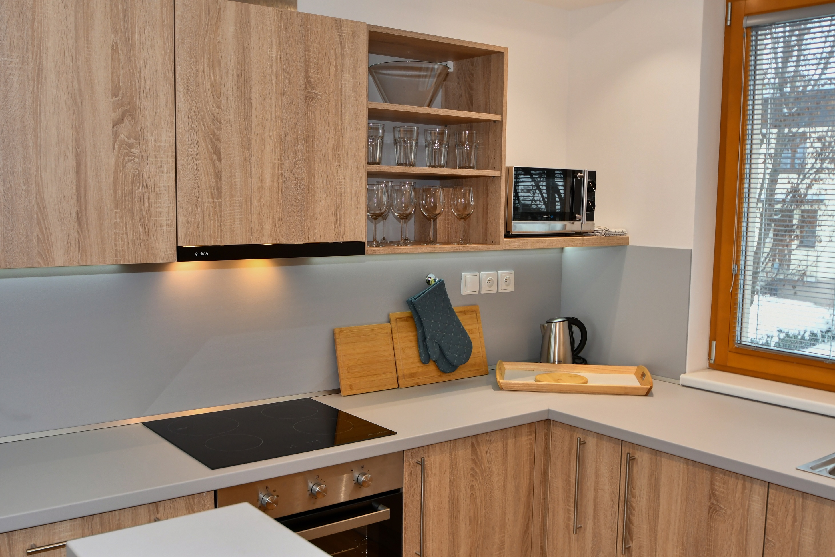 V bytě je podlahové topení s plynovým kondenzačním kotlem Baxi Nuvola Duo-tec, se zásobníkem pro ohřev teplé vody. Vlastní klimatizační jednotka zn. Daikin. Byt je vybaven systémem pro řízení chytré domácnosti zn. SIEMENS. Instalovaný Smart systém umožňuje uživatelům bytu pohodlně ovládat z jednoho místa topení, chlazení a stínění oken. Dřevěná okna s izolačními trojskly, v obývacím pokoji jsou předokenní žaluzie zn. VEKRA, ovládané elektrickým pohonem. V celém bytě jsou vinylové podlahy.