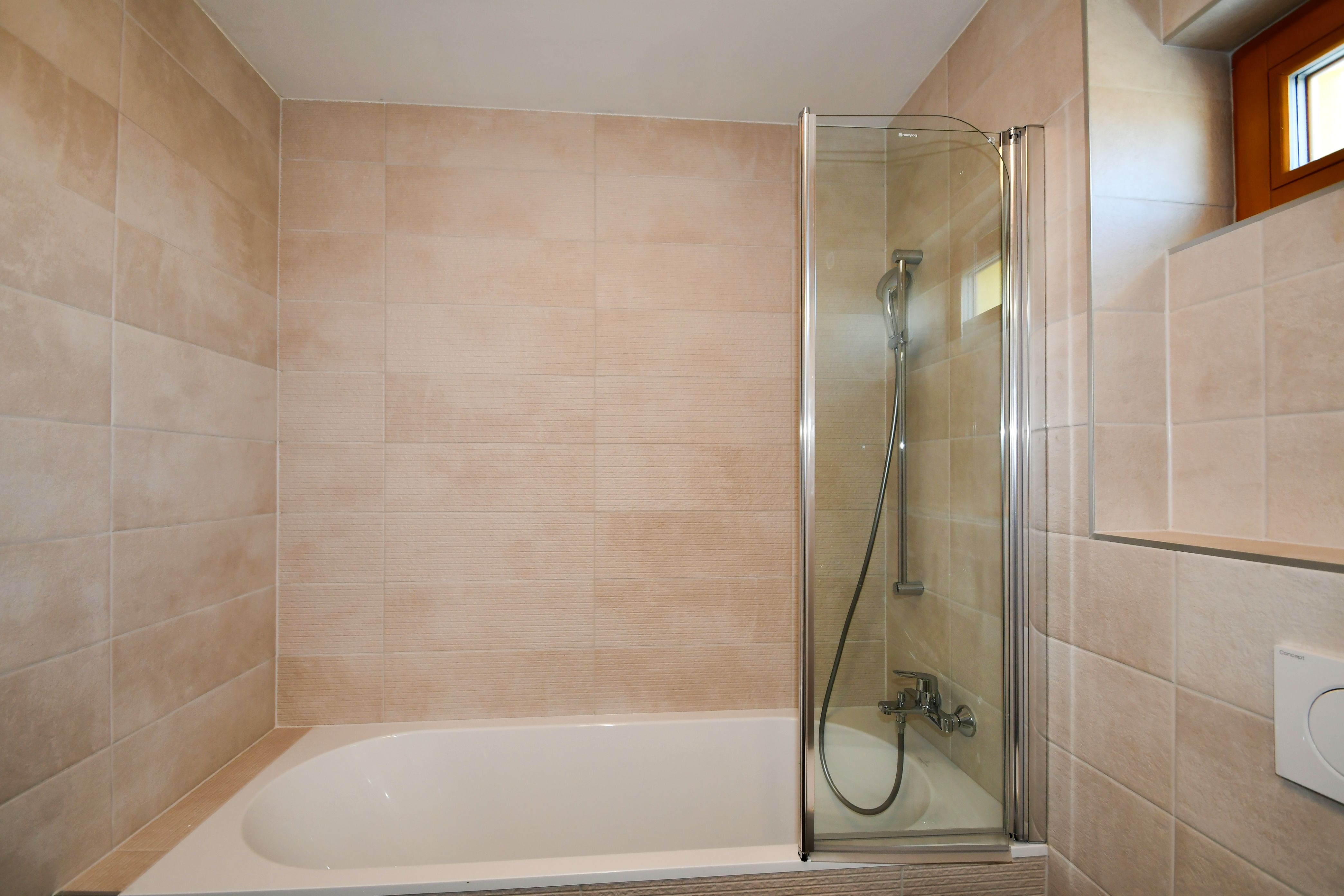 Koupelna (4,6 m2) je s vanou, umyvadlem a WC.