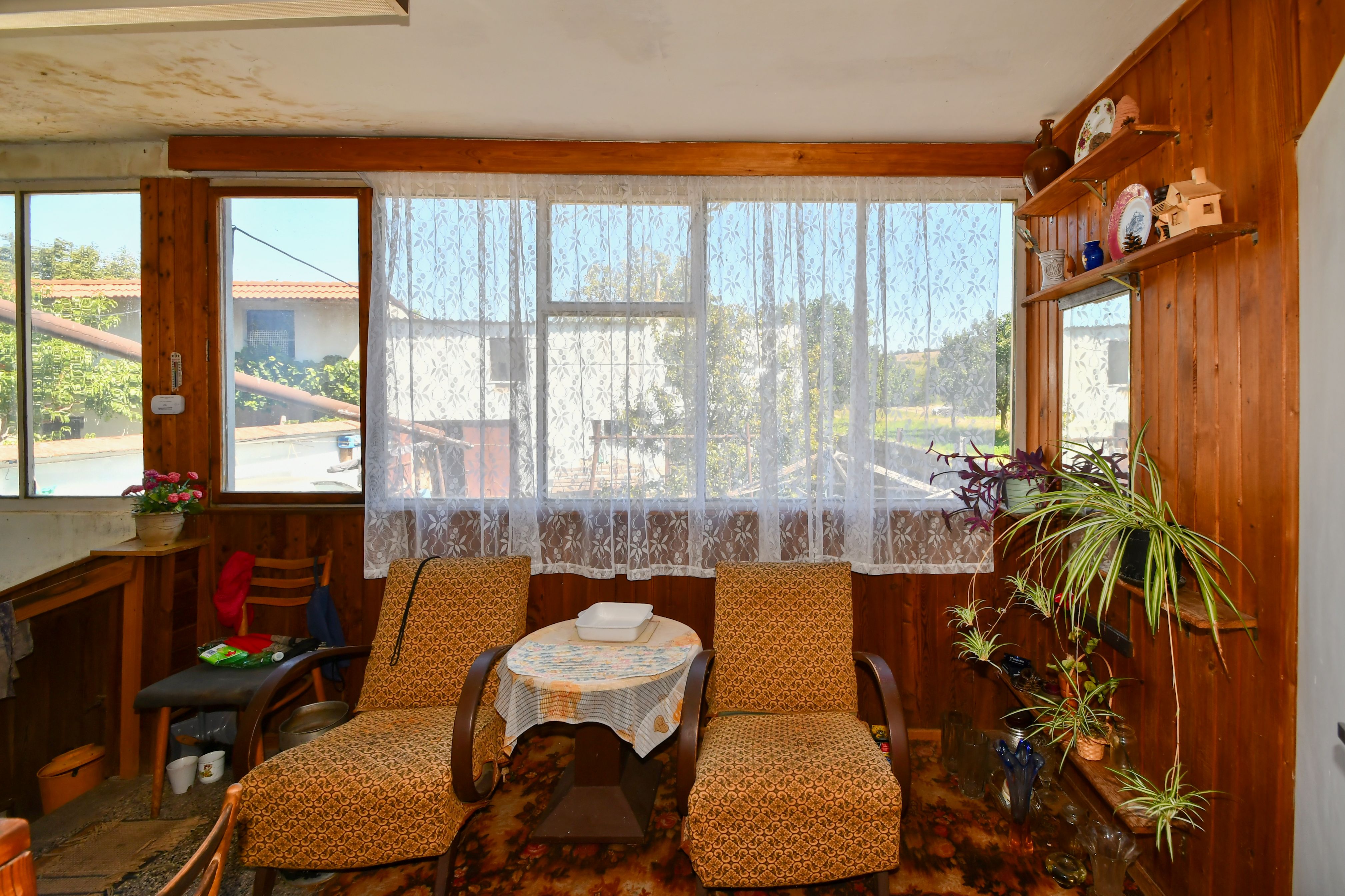 V přízemí objektu se nachází tři pokoje 15,1 m2, 14 m2, 15,3 m2, kuchyně 7,7 m2, vstupní chodba 4,3 m2, koupelna 3,1 m2, komora 3,2 m2, schodiště do podkroví 4,7 m2 a prosklená veranda 13,8 m2.