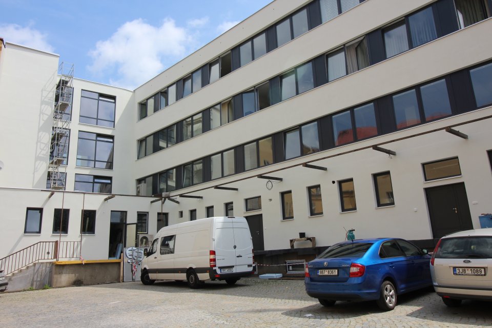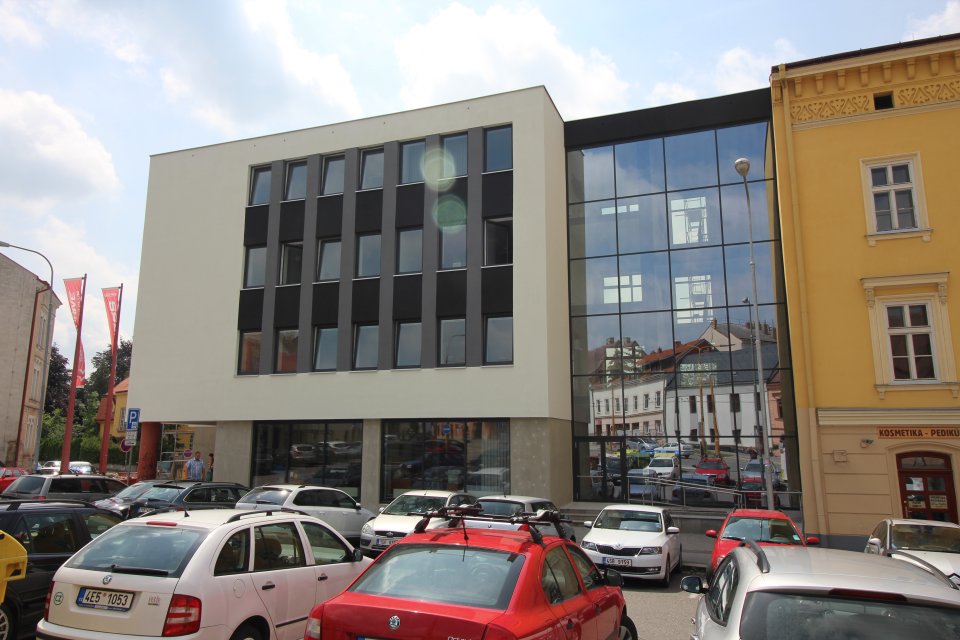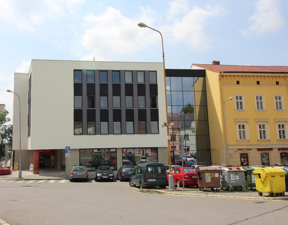 Jihlava, Žižkova ulice. Pronájem zařízených pokojů v multifunkční budově e-Fi Galerie v centru města. Pokoje se nacházejí ve třetím a čtvrtém patře. Výtah, možnost parkování.