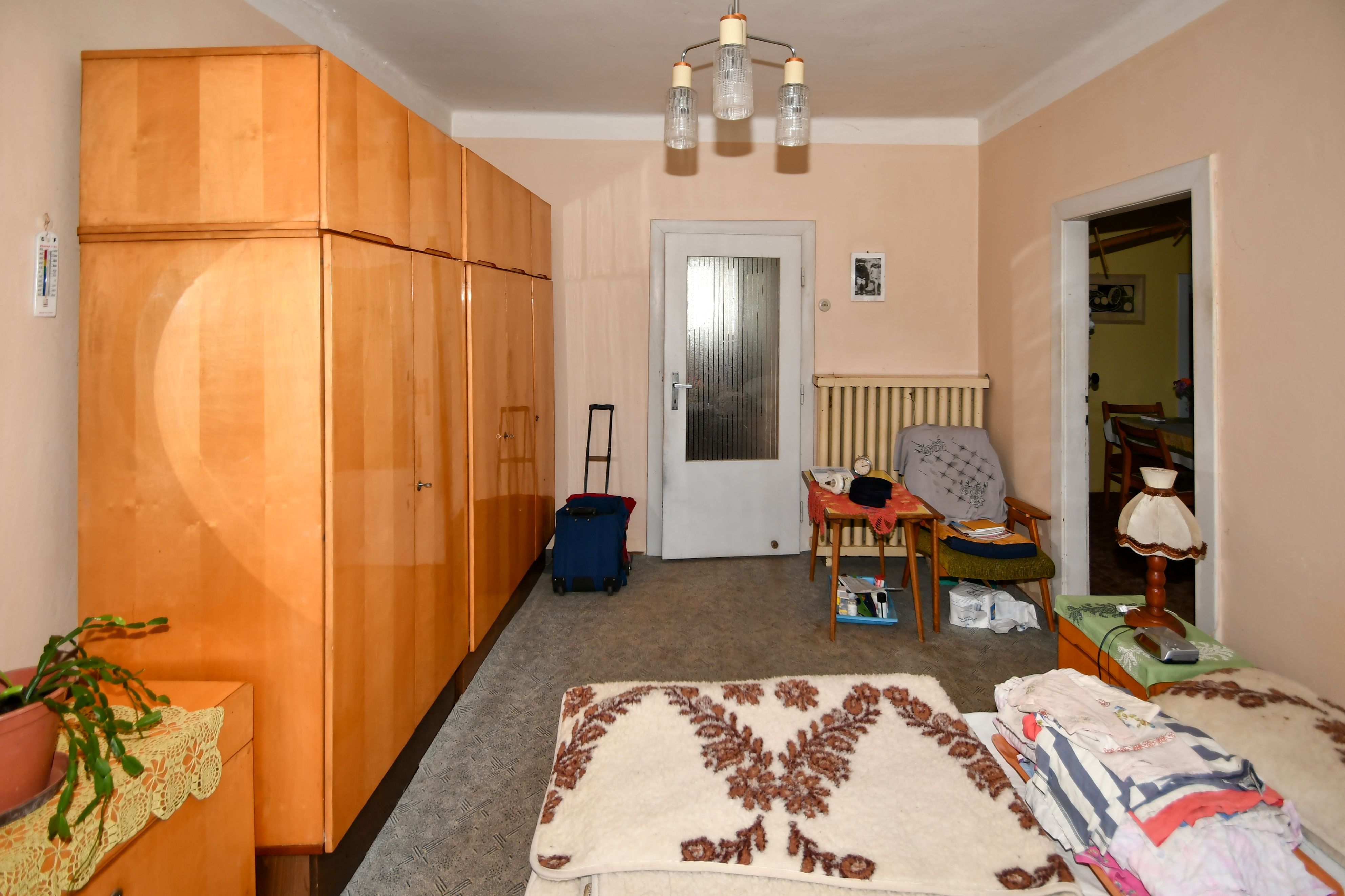 V obytném podkroví jsou tři pokoje 12,4 m2, 12,2 m2, 11,4 m2, WC 3,6 m2 a chodba 3,6 m2.