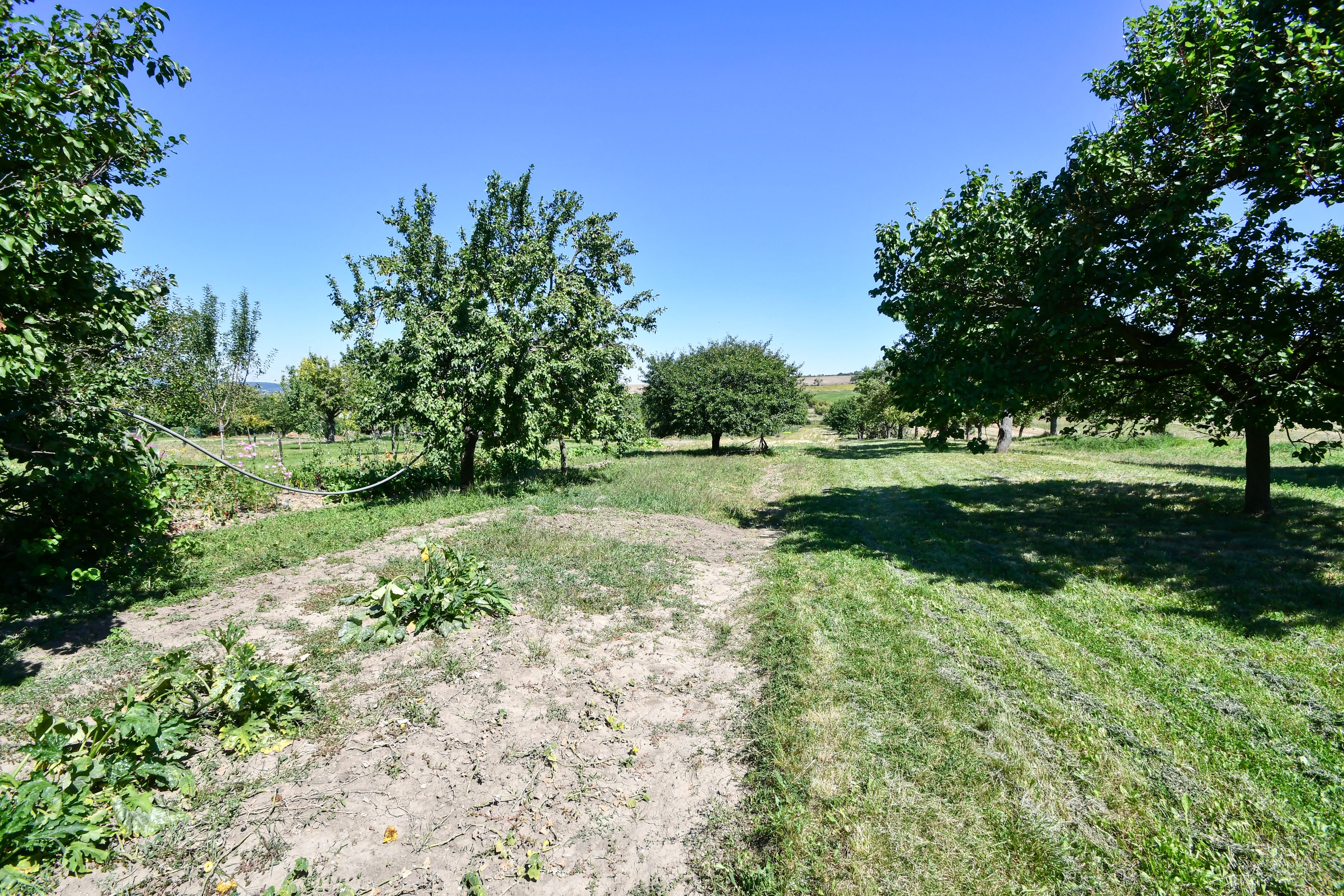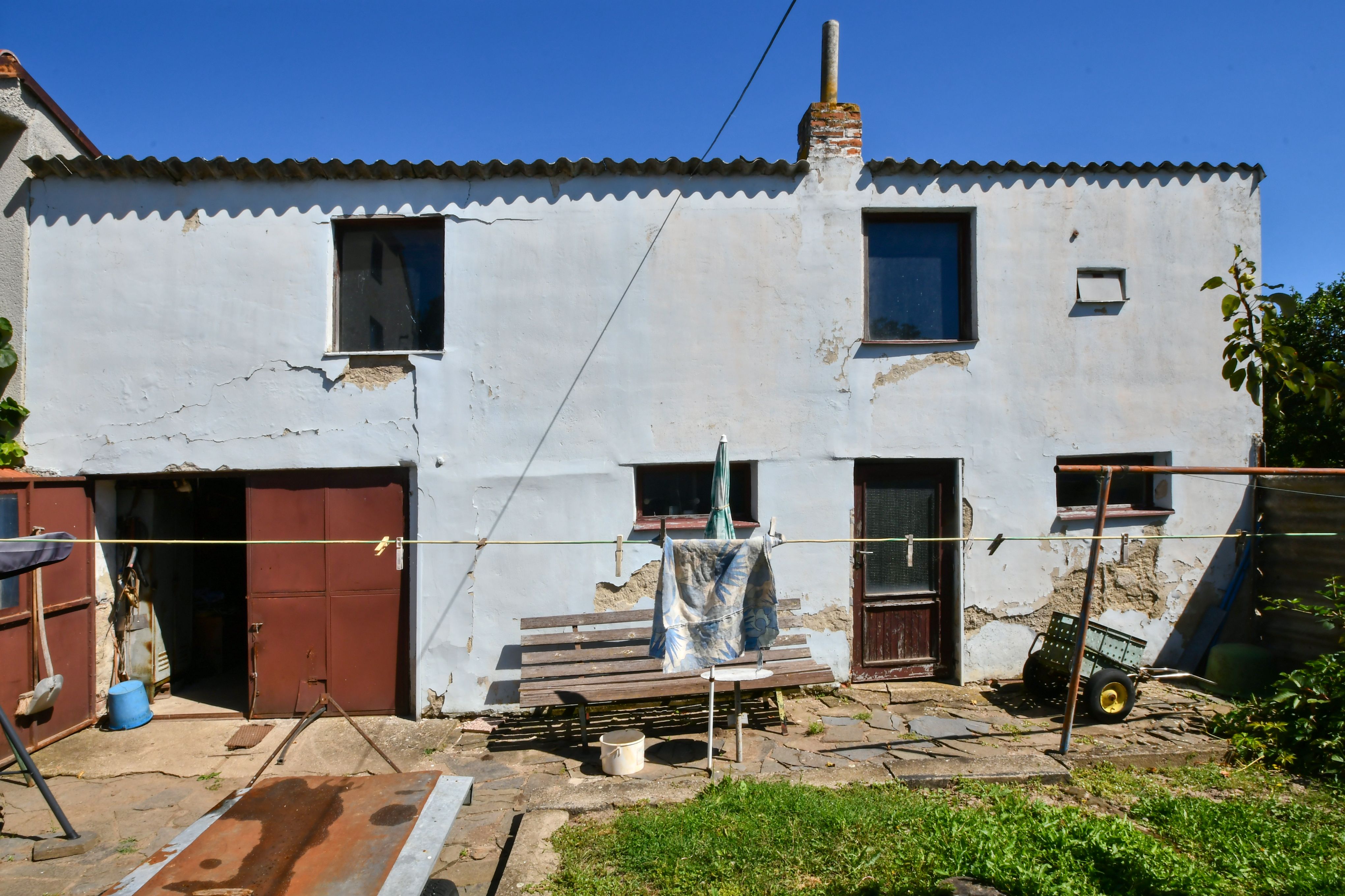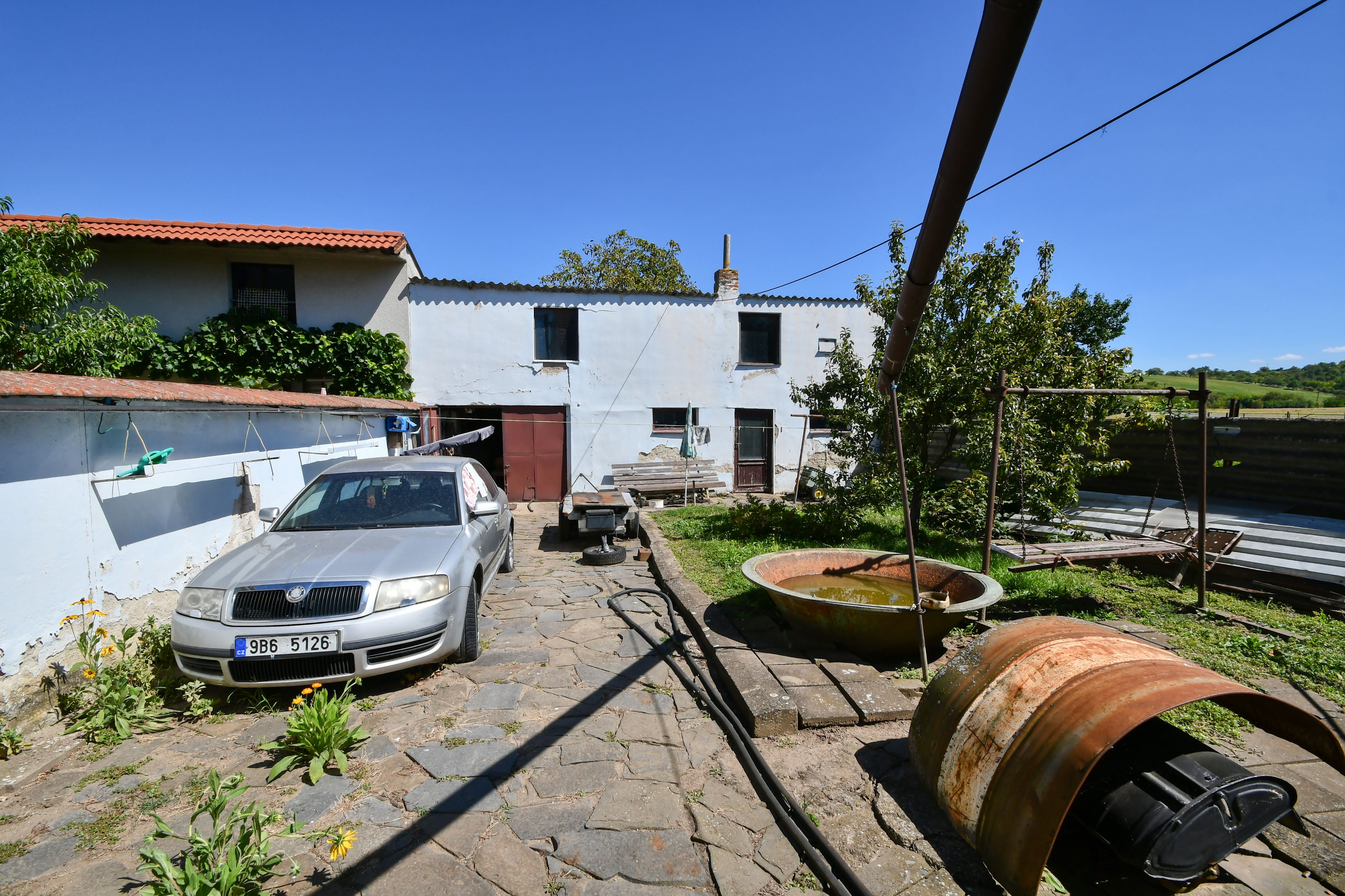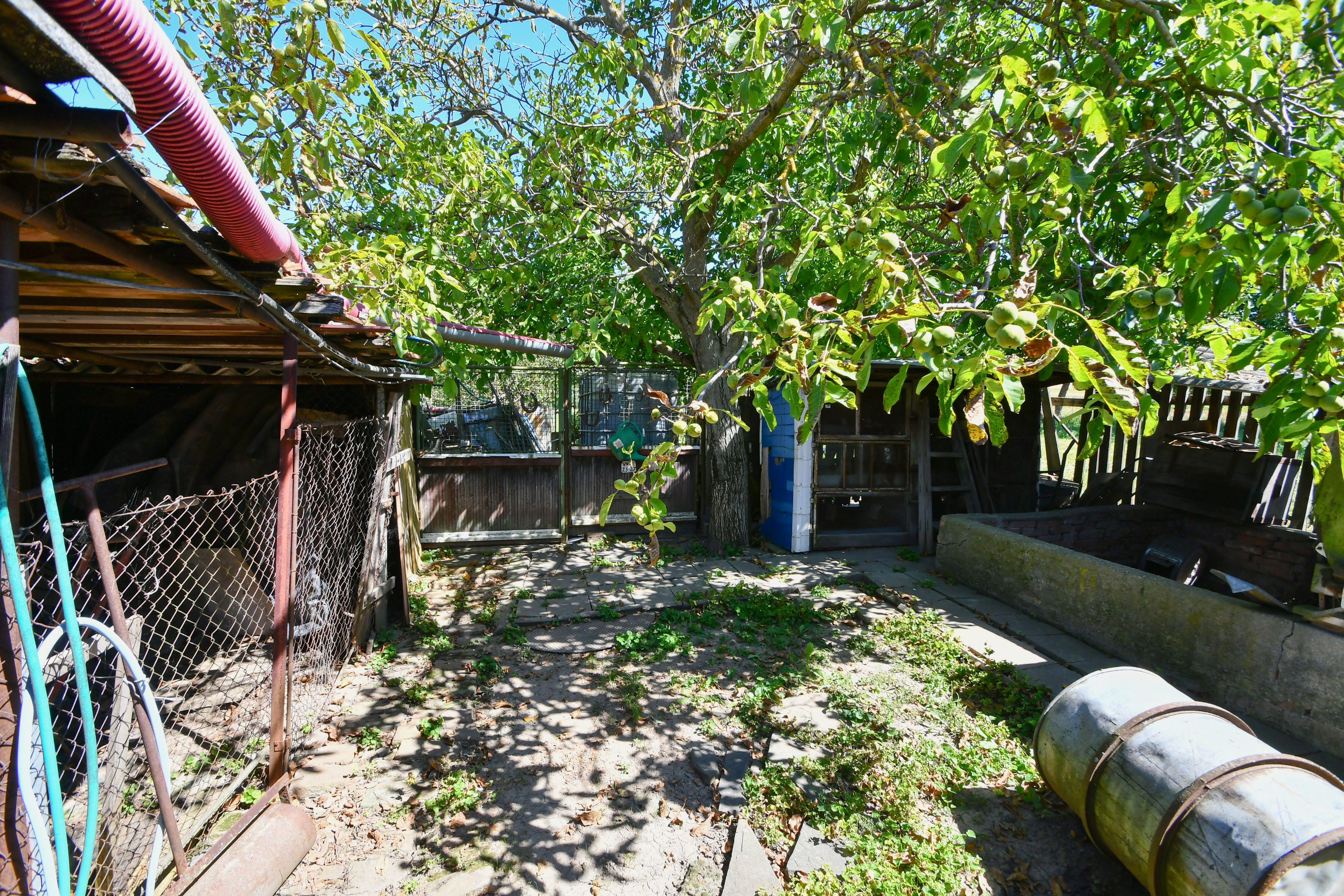 K domu náleží dvůr a hospodářská budova s průjezdem vhodným k parkování, oddělujícím dvorní část od pozemku se zahradou. K dispozici je zde také dílna a prádelna.